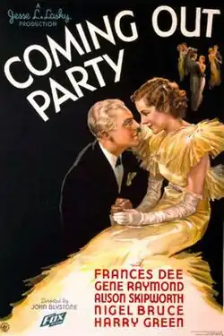 Coming Out Party is a 1934 American Pre-Code drama film directed by John G. Blystone starring Frances Dee, Gene Raymond, Alison Skipworth and Nigel Bruce. It was produced and distributed by the Fox Film Corporation.[1][2][3]