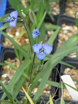 Commelina dianthifolia, known as the birdbill dayflower, is a perennial herb native to mountains in the south-western United States (Arizona, Colorado, New Mexico, Texas) and northern Mexico.[2] Petals are blue while sepals are green. The inflorescence is a scorpioid cyme and it is subtended by a boat-like spathe.
