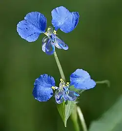 Commelina forskaolii, sometimes known as rat's ear, is an herbaceous plant in the dayflower family native to much of Africa, Arabia, and India. It has also been introduced to Florida in the United States. It is considered a common species in most of its range. It can be easily recognized by its bright blue flowers with winged stamen filaments. The seeds are also distinctive with distinctive irregular ridges on their sides. It often forms dense mats, and can be found most commonly in sandy soils in at least somewhat sunny situations. The species is considered a weed in many areas because of its hardiness and ability to produce cleistogamous flowers.[2]