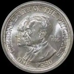 | 1 peso | 1936 | Foundation of the Commonwealth of the Philippines, with portraits of President Manuel Quezon and U.S. President Franklin D. Roosevelt | 10,000 | 35 mm | 20.0 g | 90% silver | |
