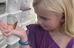Commercial butterfly breeding or captive butterfly breeding is the practice of breeding butterflies and moths in controlled environments to supply the stock to research facilities, universities, zoos, insectariums, elementary and secondary schools, butterfly exhibits, conservation organizations, nature centers, individuals, and other commercial facilities. Some butterfly and moth breeders limit their market to wholesale customers while other breeders supply smaller volumes of stock as a retail activity. Some small scale and larger scale breeders limit their businesses to the provision of butterflies or moths for schools. Others provide butterflies to be used and released in commemorative events.[1] The release usually occurs in the natural range of the butterfly.