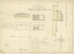 In common with the settlement's other new buildings, the Commissariat Store followed a simple design suitable for everyday use in a penal colony and was well constructed from local materials.[1] The design was by William John Dumaresq (Acting Civil Engineer for New South Wales) whose plans arrived from Sydney in April 1828.[6][7] Dumaresq was also responsible for the design of the store at Dunwich completed in 1828.[8][1]