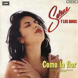 According to Parédez, "Como la Flor" exemplifies a pop-cumbia composition that caters to a broad range of Latino musical preferences.[44] The song's themes of yearning and anguish are palpable,[45] and the recording possesses a "residue of materiality".[46] The song's melodic shifts successfully evoke Selena's presence in an elegy that marks her absence, providing a multi-layered "emotional register and communal sensibility".[47] During Selena's emotional proclamations of unrequited love, "Como la Flor" exerts a "tensive pull" on the listener.[15] Selena's "teardrop vocals" capture and convey what Roland Barthes referred to as "the grain of Selena's voice".[48] "Como la Flor" furnishes "emotionally useful modalities" akin to Jill Dolan's "utopian performatives" or Josh Kun's "audiotopias". Blanco-Cano and Urquijo-Ruiz assert that "Como la Flor" is capable of measuring and directing "the affective labor of Latinidad".[49] Pérez extols Selena's emotive vocal delivery, which elevated "Como la Flor" and found other performances of the song by other artists as lacking Selena's emotional delivery.[27] Sertan Sanderson of Deutsche Welle asserts that the song can be appreciated even by non-Spanish speakers.[50] "Como la Flor" was included in the posthumously released album Dreaming of You (1995), which was remixed by A. B who mixed the song to match the way the band would have performed it live.[51] It diluted Selena's ethnic sound so that it would appeal to a wider mainstream audience, incorporating additional percussions to enhance the track's appeal, according to Burr in Billboard.[52]