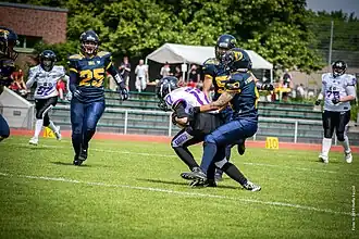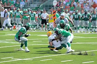 In American football, a team has four downs to advance the ball 10 yards, while in Canadian football the limit is three downs.[15][16] On the surface, this creates a considerable handicap for a Canadian football offence. However, most other rule differences as described below strongly favor the defense in the American game.