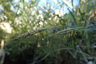 Compilospecies were first described by Harlan and de Wet in 1962, who examined a wide range of grasses and other species such as Bothriochloa intermedia, otherwise known as Australian bluestem grass. B. intermedia was found to introgress heavily with neighboring sympatric grass species and even genera, particularly in geographically restricted areas.[1] The species itself is of hybrid origin, containing genetic material from five or more different grass species.[1] Harlan and de Wet examined the interactions between the genera Bothriochloa, Dichanthium and Capillipedium - an apomictic complex of grasses from the tribe Andropogoneae - and used the cytogenetic model of these as a basis for the compilospecies concept.[1][6] Species within these genera exhibit both sexual and asexual reproduction, high heterozygosity, ploidies from 2x to 6x, and gene flow between bordering populations as evidence of ongoing introgression.[1][6] However, this gene flow is only made possible in the presence of B. intermedia, which introgression moves towards, and the absence of which keeps the other species reproductively isolated.[1][7] B. intermedia is identified as the compilospecies in this model.