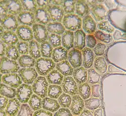 Complex oil bodies are often the most conspicuous features of liverwort cells in light microscopy, and as variable as they are in number, shape, colour, and homogeneity, they have long been recognized as taxonomically relevant.[4] Unfortunately, this is a character that requires observation in fresh material, as under unnaturally high rates of drying the complex oil bodies disintegrate.[4] Worth noting is that under natural rates of desiccation the oil bodies seem to retain their original structure.[32] Various classifications for oil body types have been proposed based upon their high variability, and they have been used extensively to distinguish between families, genera and species.[4] Chemotaxonomics based on the putative oil-body contents has also proved valuable.[15]