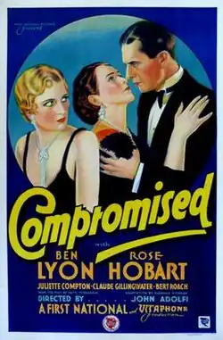 Compromised (1931) is an all-talking pre-code drama film produced and released by First National Pictures, a subsidiary of Warner Bros., and directed by John G. Adolfi. The film stars Rose Hobart, Ben Lyon, and Claude Gillingwater. It was based on a play by Edith Fitzgerald.[1] This film is presumed lost.