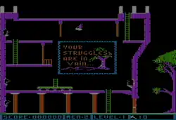 One innovate and original feature of the game's time was a random close-up picture that would be shown upon the player's last death. For example, dying in the first level might show a close-up picture of a bat with the caption "Bats in your Belfry". Deaths in other levels would yield a picture of a hazard unique to that level. Each level has 4 possible random death messages that can be shown: