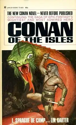 Conan of the Isles is a fantasy novel by American writers L. Sprague de Camp and Lin Carter, featuring Robert E. Howard's sword and sorcery hero Conan the Barbarian. It was first published October 1968 in paperback by Lancer Books; publication was then taken over by Ace Books, starting from May 1977.[1][2]