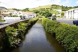 Gaspar Frutuoso, referred to the ravine in these terms: "...in days of strong showers, the water [sic] strength and quantity of water overflow, difficulting [sic] the crossing [of] the center of the village". Even Frutuoso knew of the importance of this river, as he elaborated that the waters were used for mills along the waters edge, and requiring the bridge to cross between the two settlement agglomerations. Once called the Foz da Ribeira, later the Praia da Alagoa or Praia da Conceição (Beach of Conceição), is one of the few natural sand beaches on the island, and along with the Vitorino Nemésio Park (Portuguese: Parque Vitorino Nemésio) is part of a recreational area in the shadow of Espalamaca.