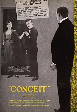 Conceit is a 1921 American silent drama film directed by Burton George, produced by Selznick Pictures, and released by Select Pictures. The film stars William B. Davidson and Mrs. De Wolf Hopper, who later became a gossip columnist using the name "Hedda Hopper".[1][2][3]