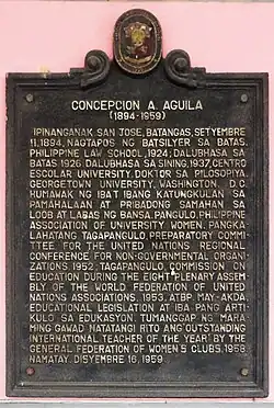 - ^ a b c "Concepcion Aguila was Born in San Jose, Batangas". The Kahimyang Project. 2013-09-05. Retrieved 2024-11-27.