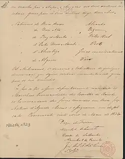 1. ^ "Convenção de Évora Monte, estabelecida entre os Comandantes dos Exércitos de D. Maria II e de D. Miguel, a 26 de Maio de 1834" [Convention of Evoramonte, signed between the commanders of the armies of Maria II and Miguel I, on 26 May 1834]. National Library of Portugal (in Portuguese). Lisbon, Portugal. 19 July 2023. Retrieved 2 May 2025.