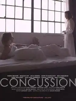 Concussion is a 2013 American drama film written and directed by Stacie Passon and starring Robin Weigert. Although not autobiographical, the story was partially inspired by Passon herself suffering a mild concussion, in the same manner depicted in the film, shortly before she began writing the screenplay.[3]