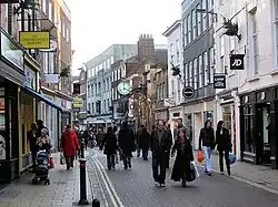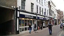During the 20th century, an increasing number of the shops were taken over by national chains. Boots opened in 1919, Woolworth's in 1924, and W. H. Smith's in 1920. The Black Swan was eventually demolished and replaced by a large shop, which became BHS. Despite the closure of several shops in the 2010s, the street remains home to a mix of High Street shops and cafes, while numerous buskers perform throughout the day.[1][6] The musician Chris Helme was discovered while busking on the street.[7]