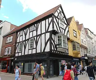 The Bull Inn was built in the 15th century, which from 1459 was the only place in the city at which foreigners could stay. The George Inn opened on the street in 1614, becoming the city's most prominent coaching inn. Soon after, the Black Swan was built on the other side of the street, a large inn which could stable 130 horses. In 1691, the Bagnio Turkish bath was built just off the street.[1] This was later converted into St Peter's School, and then a printing house where the first edition of Tristram Shandy was published.[2]