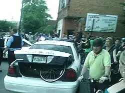 A group of riders caught the vehicle, broke its rear windshield, slashed the tires, and assaulted the motorist when he got out. Damage to the car was estimated at $1,500.[80][83] The motorist was struck in the back of his head by a bike lock[82] and later hospitalized.[84] Two cyclists were arrested for vandalism to the car. Seattle police did not charge the motorist.[85]