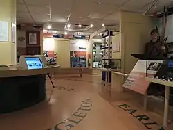 The museum focuses on the history of Congleton and its immediate neighbourhood, with particular emphasis on prehistory, the Civil War, the Industrial age and World War II.[6] The main display area is on the ground floor. On the first floor there is a research library and map collection and an education room. This is used for exhibitions, school visits, talks and social events. There are also showcases for the display of other items from the collection.