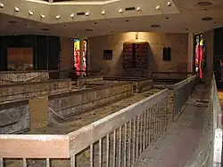 Beth Israel rebuilt its synagogue at the Carondelet Street location in 1924.[15] The new building was designed by Emile Weil, a Southern architect renown for his design of religious buildings and theaters. He designed other New Orleans' synagogues, including the Touro Synagogue and the Anshe Sfard, as well as other non-religious buildings throughout Louisiana.[22] Beth Israel's new Byzantine Revival building, with its seating capacity of 1,200, reflected "the growing economic and social confidence of the membership": it had "beautiful" stained-glass windows, a "magnificent" imported European chandelier, and "hand-carved Stars of David in the ceiling".[16][23] The building was dedicated on September 12, and a Boston rabbi, Henry Raphael Gold, was a guest speaker. He was so impressed that he stayed on, becoming Beth Israel's rabbi.[16]