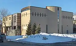 By 1994, membership exceeded 410 households.[13] The congregation's growth made it impossible for all members to worship together; the original synagogue building had been sized for no more than 150 families. On the High Holy Days, when around 600 people attended (versus 150 on a typical Shabbat), services were split between the sanctuary and a school auditorium/gymnasium.[2][3] In 1992, the congregation voted against expanding the building, but after the 1995 Quebec sovereignty referendum, members felt more confident in Quebec's political situation and economy. In 1999, Aigen led the congregation in a campaign to construct a new building.[2] The property next to the existing building was purchased to accommodate a larger structure, and the existing sanctuary was torn down.[3] While the new synagogue was under construction, the congregation worshiped and held activities at the YM-YWHA.[2] The new building was open in time for the 2003 High Holy Days.[3]