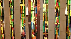 The stained glass windows from the old building were installed in the new sanctuary,[12] which one entered through a copper door.[17] Additional stained glass windows were created by Montreal's Studio du Verre in 2005.[18]