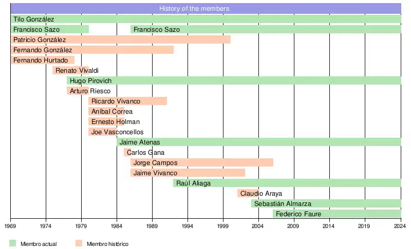 | Members | Current members: Sergio "Tilo" González Francisco "Pancho" Sazo Hugo Pirovic Jaime Atenas Raúl Aliaga Sebastiàn Almarza Federico Fauré |
