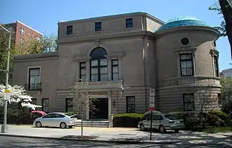 The Congressional Club (founded in 1908) is an historic clubhouse located at 2001 New Hampshire Avenue NW, Washington, D.C., in the U Street Corridor. The organization it hosts, which is the official club of congressional spouses, was created in May 1908 with the Sixtieth Congress passage of HR22029. The Congressional Club is the only club in the world to be incorporated by an act of Congress.[3] Since 1912, the club has hosted a luncheon honoring the First Lady of the United States. It is the largest annual event sponsored by the Club.[4]
