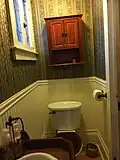 The interior features elaborate and extensive woodwork, quarter-sawn oak floors throughout the house, one of the longest cantilevered staircases on the East Coast of the United States, a large and ornate antique Eastlake-style chandelier in the dining room, and the only known existing installation of M.H. Birge & Sons block-printed peacock wallpaper ca. 1915. The home was constructed by the owners of Conklin Wagon Works, one of Olean's most important industries in the late 19th century. It was subsequently owned by the Mountain family, who operated the Mountain Clinic Infirmary, and is currently an owner-occupied single family residence not open to the public. On the morning of October 8, 2023 the house caught fire, resulting in the residents being displaced and a total loss of the historic interiors.[2]