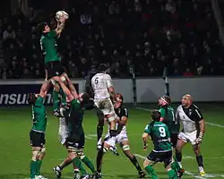 Lineout against Toulouse in their 2011–12 Heineken Cup group stage match at Stade Ernest-Wallon