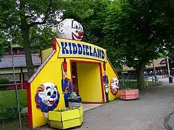 Kiddieland was a small, enclosed section of the park, containing rides specifically for children. It was located behind the Carousel and across from the Witch's Stew and Trabant. The original Kiddieland restrooms were destroyed by an arson fire in 2010. They have since been rebuilt.