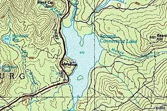Second Connecticut Lake, known in the past as Lake Carmel,[4] is a 1,102-acre (446 ha)[2] water body in the town of Pittsburg, 15 miles (24 km) northeast of the village center.[5] The second lake is 228 feet (69 m) higher in elevation than the first lake, and shallower.