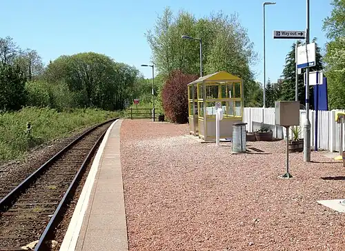 Facilities at the station are basic, consisting of just a shelter, a bench, bike racks, a help point and a small car park.[9] As there are no facilities to purchase tickets, passengers must buy one in advance, or from the guard on the train.
