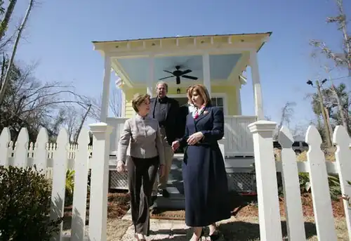 First Lady Laura Bush toured Ocean Springs and the Katrina Cottages with Moran in February 2007.