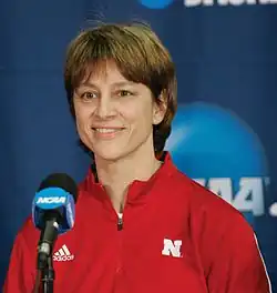 Connie Sue Yori (born October 3, 1963)[1] is the former head coach of the Nebraska Cornhuskers women's basketball team representing the University of Nebraska in NCAA Division I competition.[2][3][4][5] She formerly coached Loras College (a Division III school) from 1990 to 1992 and Creighton from 1992 to 2002. In 2009–10, Yori was named the Naismith College Coach of the Year, AP College Basketball Coach of the Year[6] and the Women's Basketball Coaches Association Coach of the Year after guiding Nebraska to a 32–2 record and the school's first-ever trip to the NCAA Women's Division I Basketball Championship Sweet 16.[3]