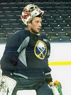 Connor Knapp (born May 1, 1990) is an American former professional ice hockey goaltender. Knapp was selected by the Buffalo Sabres in the 6th round (164th overall) of the 2009 NHL Entry Draft and played two games in the NHL, both for the Sabres in 2014.[1]