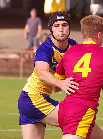 ![]() Connor (left) tacking another player. | ||||||||||||||||||||||