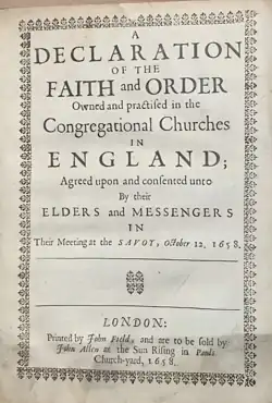 - ^ "Historic Documents of Congregationalism". NextStep Resources. Retrieved 2024-03-29.