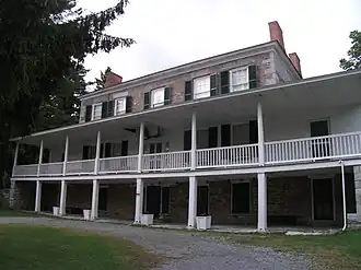 Constable Hall is a historic home located at Constableville in Lewis County, New York. It was built between 1810 and 1819 and is a two-story, rectangular Federal style limestone building with two 1-story wings. A U-shaped courtyard is created by the west side of the house and the two-story frame servants quarters to the south and carriage house to the north. The front features a two-story pedimented portico with paired attenuated free-standing Doric order columns on each side of the doorway.[2]