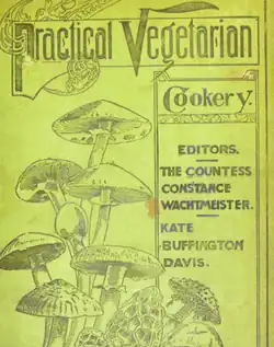 Wachtmeister and Kate Buffington Davis authored a vegetarian cookbook, Practical Vegetarian Cookery in 1897.[17] The recipes were ovo-lacto vegetarian.[18] It was one of the first vegetarian guidebooks published in America.[19]
