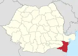 - Tulcea County and Brăila County are to the north.