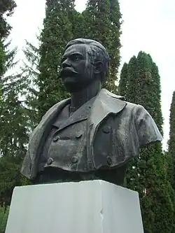 During the communist period, Dobrescu-Argeș was subjected to official criticism. In one novel of the period, Isac Ludo revisited the embezzling scandal, suggesting that other politicians were secretly admiring the leader of the "so-called peasants' party" for his criminal resourcefulness.[194] Writing in 1957, literary critic Ion Roman described Gazeta as a voice of "diversionary political interests".[162] Dobrescu's 1933 bust was moved out of the city center in 1961, to be replaced in 1969 by a statue of Vladislav Vlaicu; it was ultimately relocated in front of Curtea de Argeș Agricultural High School in 1996.[195] By late 1968, the Mușătești library, having collected some 9,000 volumes, was scheduled for a southward relocation to Vâlsănești—its managers issued a letter of protest, noting that the latter village only had 50 regular readers.[196] The authorities took interest during 1969, which was Dobrescu's 110th anniversary. Another bust was put up in Mușătești in May 1969, upon the opening ceremony for the local museum of history and ethnography.[197] A cultural club and research society bearing Dobrescu's name were founded there in 1973, but remained largely inactive.[198]