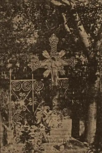 By 1909, Dobrescu's other brother-in-law, P. T. Rădulescu, was a national representative in schoolteachers' organizations, allegedly using his position to advance the corrupt agenda of cooperative-bank managers.[6] Valescu retired the Mușătești printing press in 1912, but continued to put out a newspaper, Vocea Argeșului, from Curtea de Argeș.[175] Muscel schoolteacher Ion Mihalache, who was emerging as a leader of the agrarian movement, tried to visit Dobrescu-Argeș in 1903, and was informed of his death. He never read any of Dobrescu's writings until after 1918, but formed a secretive committee to network for the reestablishment of a peasantry party.[176] Just before the elections of May 1914, Mihalache described himself a would-be "peasants' deputy", like Dobrescu, but also declared that he intended to remain politically independent of any parties, and of government influence.[177] Reflecting back on this period, Arghezi called Mihalache "a distant descendant of Dobrescu-Argeș, so very less romantic, more positive, more concise".[178] In 1915, a Dobrescu-Argeș Cultural Home was launched in Mușătești, alongside a local library with 5,000 titles and decimal classification.[77] Around that time, with Romania still preserving neutrality in World War I, Valescu and Gazeta allegedly became mouthpieces of the Central Powers.[179] Alexandru and Paraschiva's son Emil Valescu, who was aged 8 at his uncle's death, fought in the subsequent campaigns against the Central Powers, and became a Romanian Army Colonel.[5]