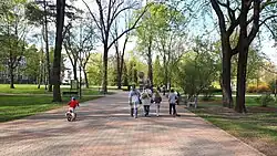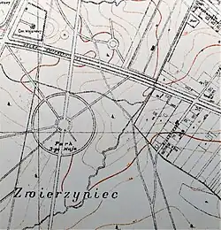 In May 1919, the Białystok city hall decided to name part of the Zwierzynicki Forest to 3rd May Constitution Park. It covered the area between Wołodyjowskiego, Zwierzyniecka and Podlesna streets. In 1924, work began in the park to mark out 11 Listopada Avenue and prepare for the construction of a sports field, the grand opening of which took place in 1926. First, oak trees were planted there, later a small monument in the shape of a pyramid was built.[3] Despite these works, the park itself was neglected, and the city's residents did not treat it as a place for relaxation and walks. In 1928, the Białystok City Council was even forced to issue a regulation prohibiting hunting birds that flocked to the park. This was due to complaints that the park was impossible to pass through due to the annoying stench of carrion, i.e. ravens shot by "hunters".[4]