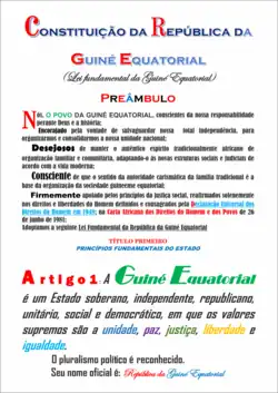 The Constitution of Equatorial Guinea (Spanish: Ley Fundamental de Guinea Ecuatorial) is the basic document of that country. It was approved in 1991 and amended in 1995.[1] In 2011, a referendum was held on a series of constitutional amendments.[2]