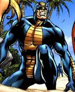 During the "Dark Reign" storyline, Quasimodo analyzed Constrictor for Norman Osborn. He states that Constrictor is a team player and can be used as a distraction so that the heavy hitters can get the job done.[31] During a conflict with the Initiative and some terrorists, Constrictor helps the Women Warriors, one of the official government hero teams. He stops an out-of-control passenger plane, saving many lives, including that of the hero Diamondback. Constrictor is visibly distressed as civilians thank him for his heroic actions. Soon after, he and Diamondback begin a romantic relationship.[32] Frank later discovers that Diamondback is secretly working for Gauntlet's "Avengers Resistance".[33] He keeps her secret despite knowing the danger this involves for them both; mainly the Initiative head, the Taskmaster, would kill them both.[34]