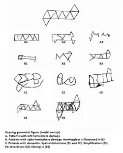 - ^ a b c d e Laeng B (2006). "Constructional apraxia after left or right unilateral stroke". Neuropsychologia. 44 (9): 1595–606. doi:10.1016/j.neuropsychologia.2006.01.023. PMID 16516249. S2CID 25691047.