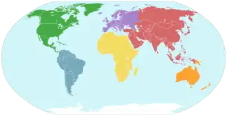 John C. Holden expanded and illustrated his own version of the idea in 1976, almost entirely as a parody, in the Journal of Irreproducible Results.[2] In Holden's expansion of the concept, he satirically invents the fictional German words Südpolarfluchtkraft ("south polar fleeing force") having created Südpolarfluchttropfen ("south polar fleeing drips"). He does, however, cite an actual theory of northward drift of Gondwanaland descendant continents of Australia, Africa, South America, and India breaking away from Antarctica, which he authored with Robert S. Dietz in 1970.[2][3] As part of the 1976 parody paper, he proposes that the "drips" or "sub-drips" are North America, Greenland, South America, Africa, Arabia, India, Asia, and Australia. Contrarily, "anti-drips" are formed by Ceylon and Antarctica itself because Antarctica is "on top of the world" as all the continents draw away from it.[2]