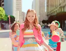 An accompanying music video was directed by the production team IKIO in downtown Los Angeles, California. The visual was directed a week before the single's initial release date.[29] According to Sync Music Japan, the concept of the video was to invoke a "marching of hope."[30] Additionally, the entire set was situated in specific areas in Los Angeles, and required police from the region to blockade the roads and bridges; this became a heavy topic within the Japanese media at the time.[30] It opens with a birds-eye view shot from the ground, showing several buildings and trees; just before the first verse, a shot of Amuro is seen. The first verse opens with Amuro walking down a street in Los Angeles, singing to the track. During the verse, intercut scenes include various shadows of children holding musical instruments behind Amuro.