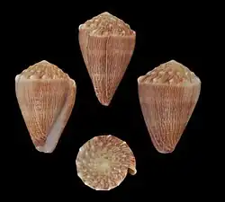 | Shells and protoconch of Conus kahiko (holotype at the Smithsonian Institution) | |