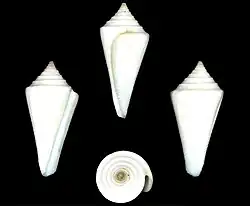 | Shell and protoconch of Conus leekremeri (specimen at the Smithsonian Institution) | |